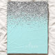 Couverture Polaire Aqua Bleu Turquoise Argent Pailleté Monogramme