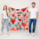 Couverture Polaire Aquarelle rouge, bleu, doux, coeurs roses monogram