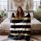 Couverture Polaire Bandes blanches et noires Accents or motif