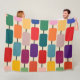 Cette grande couverture en toison a une conception Bauhaus de rectangles arrondis collés les uns aux autres en rangs.
