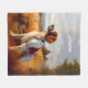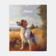 Un setter anglais brun et blanc est représenté dans un champ doré.