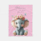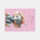Plaid en polaire avec un adorable petit éléphant bébé avec de grandes oreilles roses, des fleurs sur la tête et de jolis papillons. Personnaliser le nom, la date et la police.