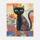 Black cat whimsical folk art, decorative and colorful.