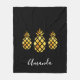 3 faux ananas tropicaux couleur or. Arrière - plan noir chic. Modèle pour le nom blanc écriture de style à la main.