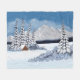 Une couverture en toison avec une belle scène hivernale comprenant des montagnes enneigées, des cabines rustiques et des verdures enneigées. Oeuvre originale de W.B.
