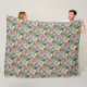 Couverture Polaire Bleu Duché avec Mauve et Fleurs Blanches
