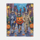 Les adorables Heelers Bleus habillés de costumes d'Halloween ludiques portent des seaux citrouilles tout en trompant ou en traitant sous le ciel illuminé par la lune. Ce design festif met en valeur le manteau bleu moucheté de la race, les yeux pointus et la personnalité énergique, capturant parfaitement l'atmosphère éffrayante et amusante de la nuit d'Halloween. Une célébration animée pour les amoureux de les chiens et les fans d'Halloween.