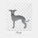 Illustration originale de Destei d'une jolie couleur bleue italien Greyhound / Iggy race dog. L'arrière - plan a un motif d'empreintes de pattes de chien gris. Il y a aussi une zone de texte personnalisable pour un nom ou un autre texte personnalisé.
