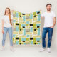 Cette couverture en toison moderne branchée du milieu du siècle présente des rectangles abstraits bleu aqua, vert avocado, jaune et bronze, ainsi que des reflets d'étoiles noirs et blancs. Ajoutez un peu de plaisir rétro à votre canapé !