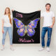 Papillon bleu rose or Nom floral Couverture polaire personnalisée.
