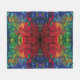Design montre un motif abstrait rouge, vert et BLEU vibrant, psychédélique et rétro. Coussins correspondants disponibles.
