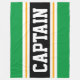 Cette conception sportive et sportive présente du texte CAPTAIN en gras à l'intérieur d'une large bande noire surlignée avec deux bandes de course blanches et jaunes contre des bandes extérieures vertes. Le texte peut être personnalisé.