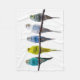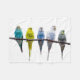 Row of budgie birds on a tree branch