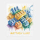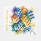 A vibrant watercolor-style illustration featuring pastel-colored building blocks arranged playfully atop a rainbow splash background. The blocks, in soft hues of yellow, blue, green, appear to be melting slightly, giving them a dreamy, whimsical effect. The dripping paint beneath creates a dynamic and artistic foundation, perfect for a fun and creative celebration.