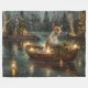Jetez un coup d'oeil à la magie de la saison des Fêtes avec cette illustration magnifiquement détaillée, montrant un chien fier assis dans un bateau à la décoration festive, glissant à travers un lac serein de Noël. Les lumières scintillantes des pins voisins se reflètent dans l'eau, projetant une lumière chaude et festive qui renforce l'ambiance cosy. Des ornements pendent des côtés du bateau, tandis que des lanternes brillantes éclairent le chemin, créant une scène qui capture l'essence véritable de la chaleur et de la joie de Noël. Cette oeuvre nostalgique apporte une touche de magie de vacances à tout espace, parfait pour ceux qui chérissent l'esprit de la saison.