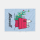 Profitez de ce design de vacances Peanuts avec Snoopy dormant sur sa maison de chien à côté de son arbre de Noël.