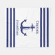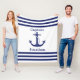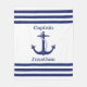 La conception nautique de cette couverture a une ancre bleu marine au centre avec le mot "Capitaine" ci-dessus, avec un nom que vous pouvez personnaliser ci-dessous et bordée de trois bandes horizontales bleu marine et blanc à chaque extrémité. Grand cadeau pour un père, un oncle, un frère ou un ami qui aime la voile.