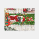 Carlin Chien Noël assis à l'extérieur de la maison décorée avec la couronne de Noël, le sapin de Noël est une idée cadeau de Noël parfait pour les amoureux de les chiens.