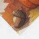Un tableau aquarelle d'un chien gai assis au milieu d'un tas de feuilles d'automne vibrantes, entouré de minuscules citrouilles et de glands épars. Le chien porte un petit casquette pèlerin et des poutres de joie, capturant l'esprit de Thanksgiving. Dans l'arrière - plan, les champs de moissons et les arbres dorés créent une ambiance campagnarde paisible. Des textures douces et des tons d'automne chauds et feutrés confèrent à la scène une atmosphère cosy et nostalgique parfaite pour célébrer la beauté de la saison.
