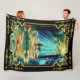 Couverture Polaire Cerf au soleil strie forêt et l'eau fleece bl