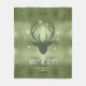 Cette couverture en toison présente une silhouette de bois de cerf et des flocons de neige en vert foncé sur un arrière - plan texturé, vert mousse. Un texte optionnel "Joyeux Fêtes" et un modèle ont été fournis pour ajouter votre nom et/ou un autre texte. Faites une recherche ID861 à ID864 pour voir d'autres options de couleurs et d'autres produits dans cet ensemble moderne de design de Noël.