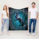 Couverture Polaire Cheval frison, étalon noir, neige, bleue