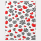 Des pattes de chien de style dessin animé décoratif et des coeurs rouges. Idée cadeau pour les personnes qui aiment les chiens.