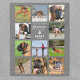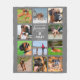 Une couverture fleurie personnalisée de souvenir d'animal de compagnie avec un arrière - plan gris moderne qui peut être changée en n'importe quelle couleur, 11 photos de votre chat, chien ou autre animal, les mots "vous avez laissé vos empreintes de pattes pour toujours sur nos coeurs", leur nom, et les dates.