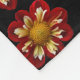 Restez gentil et chaleureux en vous baladant à côté de cette couverture molle et cosy en toison qui présente l'image d'une fleur rouge Collarette Dahlia avec des pétales intérieurs blancs sur un arrière - plan noir et imprimé dans un motif extensible. Un design floral et amusant ! Sélectionnez la taille de la couverture. Image imprimée sur un côté seulement.