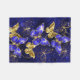 Composition des luxueux papillons saphir et bijoux en or sur arrière - plan bleu texturé.