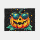 Un vaisseau spatial décalé Jack-o-lanterne portant des lunettes de soleil, mélangeant des vibes d'Halloween avec une touche cosmique cool.