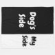 Une couverture amusante qui montre qui est le patron. À gauche, le côté plus grand de la couverture indique "Côté chien" et à droite, le côté plus petit indique "Mon Côté". Écrite dans une police facile d'identification de la police de caractères Chewy sur le jeu de couleurs noir et blanc opposé. Aussi disponible en petites tailles.
