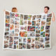 This custom fleece blanket features a large 68 photo collage layout displayed on a modern white background. Add all your special memories—family photos, baby milestones, holiday snapshots, vacations, sports wins, graduation images, wedding photos, pets & more.