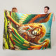 Cette couverture en toison a une créature de lion dessus.