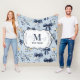 Couverture Polaire Custom Elegant Blue Bow Floral Monogram
