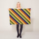 Une petite couverture en toison de taille motif avec des rayures diagonales multicolores en vert olive, vert sauge, marron noisette, bleu marine et jaune banane.