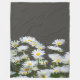 Modern decorative fleece blanket with sunny daisies on dark grey background.