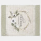 Facile de customiser le modèle de nom de famille personnalise cette couverture chaude et accueillante avec la maison, le foyer et la table de hôte rustiques ! L'aquarelle peinte à la main et l'illustration en pastel par Audrey Jeanne Roberts comporte une guirlande de brindille de saule de chat avec des plumes, des anémones et le souffle du bébé appareillé avec le feuillage de feuille d'eucalyptus au-dessus d'une rayure portée et texturisée en bois d'arrière - plan et de vert sauge de shiplap blanc mou crémeux d'arrière - plan. Copyright.