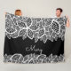 Couverture Polaire Dentelle Florale Votre Nom Blanc Noir