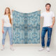 Il s'agit d'une couverture en toison qui a une couleur bleue avec des motifs floraux.