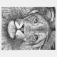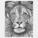 Un dessin de lion. dessiné à la main en utilisant une technique de scratchboard numérique donnant une gravure comme effet. Sur cette échelle, les qualités abstraites du dessin seront évidentes lorsqu'on les regardera de près, mais on les mélangera pour montrer une image de lion quand on les regardera de plus loin.