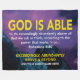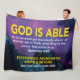 Dieu moderne EST CAPABLE Ephésiens Bible chrétienne Nom de famille Toison Blanket, avec un TEXTE PERSONNALISABLE que vous pouvez PERSONNALISER avec votre nom de famille ou supprimer. La couverture du verset biblique est conçue avec l'Écriture des Éphésiens 3:20 - Dieu est capable de faire excessivement, abondamment par-dessus tout ce que nous demandons ou pensons." L'image arrière - plan est un mauve lilas et une falaise turquoise, avec une typographie blanche et jaune audacieuse. D'autres vers bibliques populaires sont disponibles. De nombreux cadeaux de contrepartie sont disponibles.