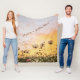 Wrap yourself in the magic of a golden hour meadow with this enchanting fleece blanket and warm yourself in this cold winter! Featuring a sun-drenched field of cosmos flowers, fluttering butterflies, and birds soaring through a warm, vibrant sunset sky, this cozy throw brings the serene and peaceful beauty of nature right into your home.