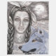 Une femme elfe indigène et son fidèle gardien, un loup bleu magique, se tiennent sereinement dans un champ ouvert sous le clair de lune pâle. Ils n'ont pas peur car ils partagent ce moment particulier hors du temps. Pour l'instant, il n'y a pas d'envie soudaine de se cacher, pas de désir de s'enfuir et de se couvrir dans la brousse sauvage, de courir et de sauter à travers la croissance forestière dense sous les arbres. Chacun puise force et sécurité à côté de l'autre. Pourtant, le regard pénétrant et aux yeux dorés du loup reste toujours vigilant. Reproduction autorisée d'un dessin original de l'artiste Joyce Jackson. Copyright Joyce Jackson. Tous droits réservés. Ne pas être reproduits ou utilisés sans l'autorisation de l'artiste de l'express. Les droits de pourcentage autorisés sont payés à l'artiste pour l'utilisation de ce dessin.