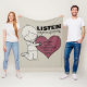 Little Boy tient un stéthoscope contre un grand coeur rouge où vous voyez les mots, "Croyez en l'incroyable qui est vous !" comme nous le rappellent les mots de David A. Carrizales qui nous incitent à écouter nos coeurs. Illustration de Christie Black.