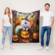 Couverture Polaire Éffrayant Samoyed Chien Halloween sorcière et Citr