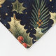 Beautifully detailed Christmas botanical pattern set against a deep midnight-blue background. The design features lush holly leaves with bright red berries, sprigs of mistletoe, pine branches, and golden stars scattered throughout. Each element is delicately illustrated with a vintage, hand-painted feel and subtle metallic accents, creating a luxurious and festive holiday aesthetic. The overall look evokes a timeless Christmas charm with touches of elegance and natural beauty.