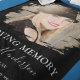 Créez votre propre plaid personnalisé avec une photo de votre proche, la phrase de condoléances "En mémoire affectueuse", leur nom, leurs dates de naissance et de décès ainsi que le message de souvenir "nous regrettons votre présence, nous chérissons votre mémoire, nous vous aimons toujours, nous ne vous oublierons jamais".