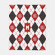 Cette équipe sportive de basket-ball couleurs polaire pour garçons ou filles dispose d'un motif plaid en Jacquard rouge, noir et blanc avec "couture" rouge s'étendant en diagonale à travers les formes diamant et des boules de basket semi-transparentes qui se superposent et se mélangent aux formes diamant rouge - personnaliser avec le monogramme de l'athlète - par katz_d_zynes