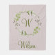 Couverture Polaire Éucalyptus vert et feuille Monogramme de la couron